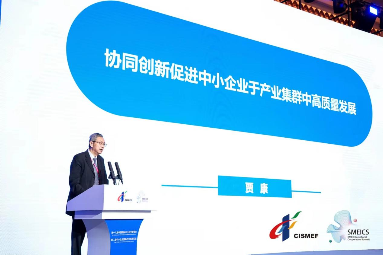 其中,華夏新供給經(jīng)濟學(xué)研究院創(chuàng)始院長賈康以“協(xié)同創(chuàng)新促進中小企業(yè)產(chǎn)業(yè)集群高質(zhì)量發(fā)展”為主題展開演講;歐盟中小企業(yè)中心主任賈子奇、日本價值工程協(xié)會中國區(qū)總代表何曉磊,分別介紹了歐洲中小企業(yè)產(chǎn)業(yè)集群發(fā)展經(jīng)驗和做法,日本政府支持產(chǎn)業(yè)集群發(fā)展的實踐與經(jīng)驗。