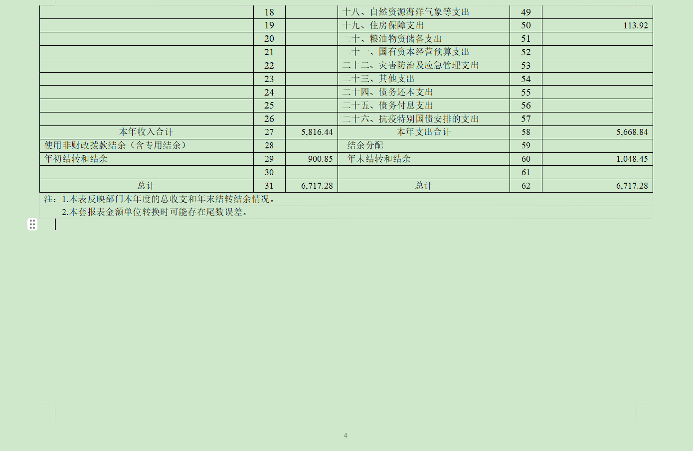 四、財政撥款收入支出決算總表