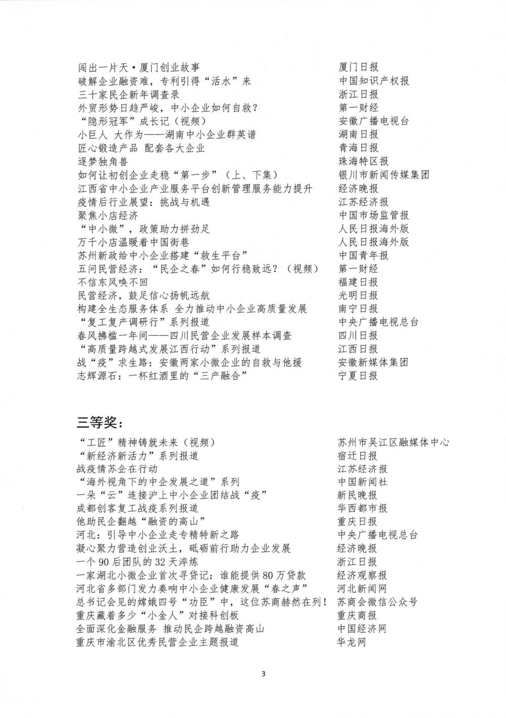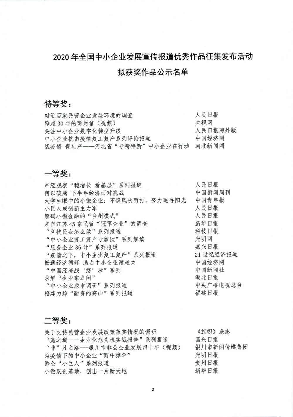 2020年全國(guó)中小企業(yè)發(fā)展宣傳報(bào)道優(yōu)秀作品征集發(fā)布活動(dòng)評(píng)選結(jié)果公示